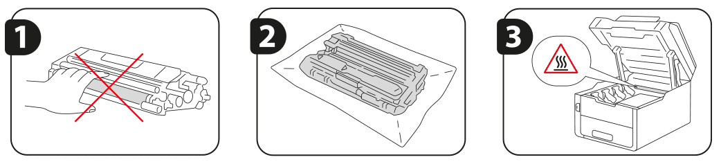 - Do not directly touch the photosensitive drum with your fingers, as it can result in poor print quality.