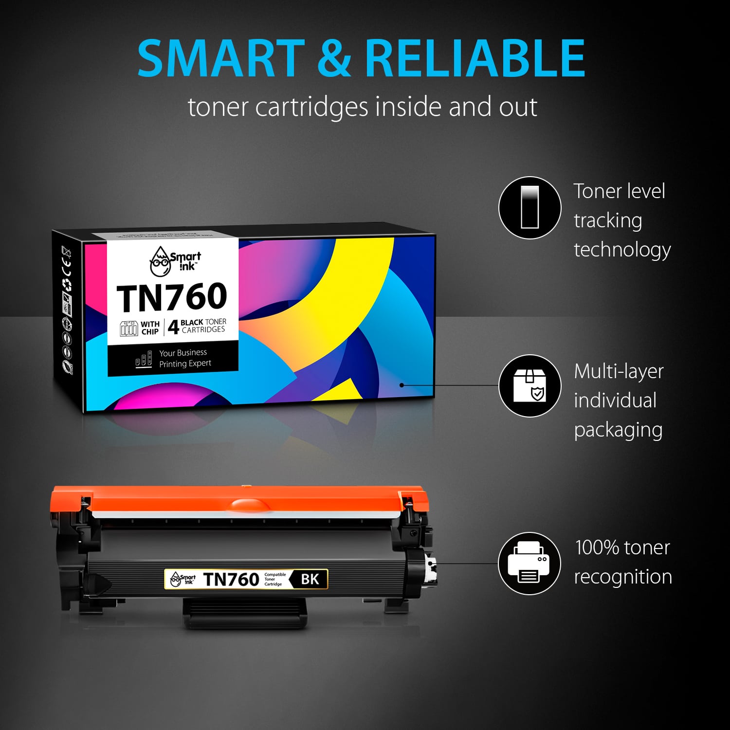 - Multi-layer individual packaging ensures safe delivery and provides prolonged storage time (up to 18 months) for TN-760 and other toners.