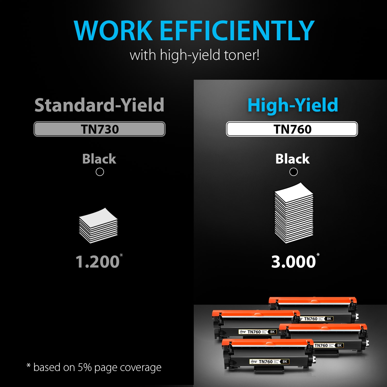 - Toner level tracking will notify you when it’s time to order the new TN760 toner pack.