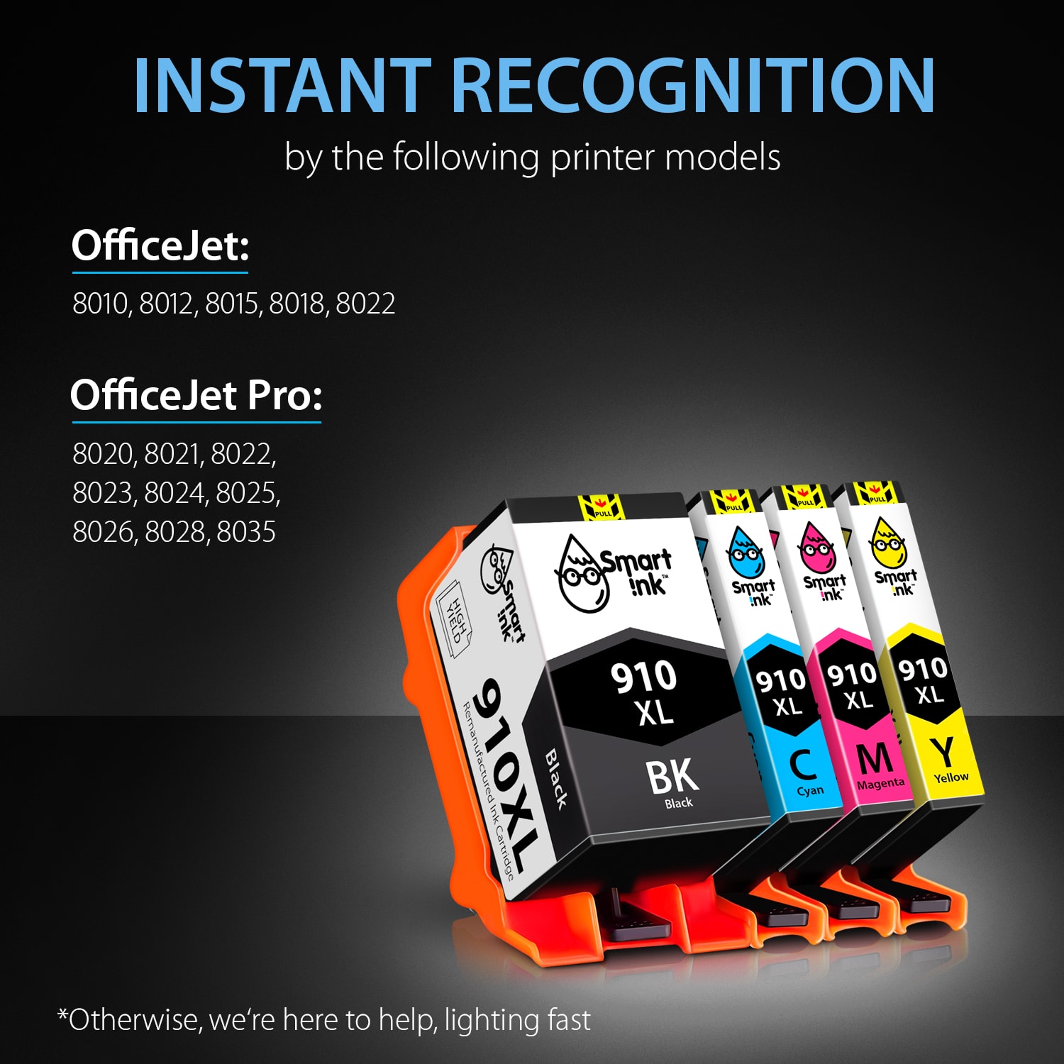 - Always the Latest Chip Version: Smart Ink HP 910XL ink replacement cartridges are equipped with the most up-to-date version of the chip and work perfectly with all compatible printers, including printers with the latest firmware.