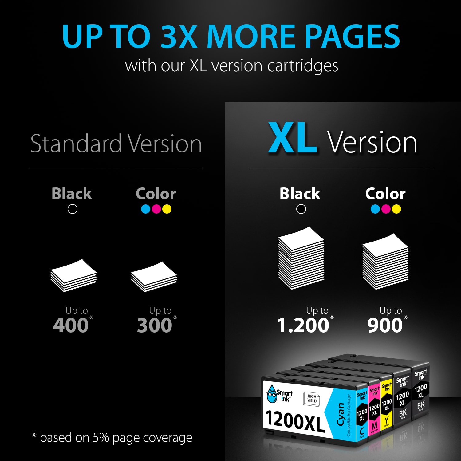- C/M/Y (PGI-1200 XL): 900 pages per each cartridge