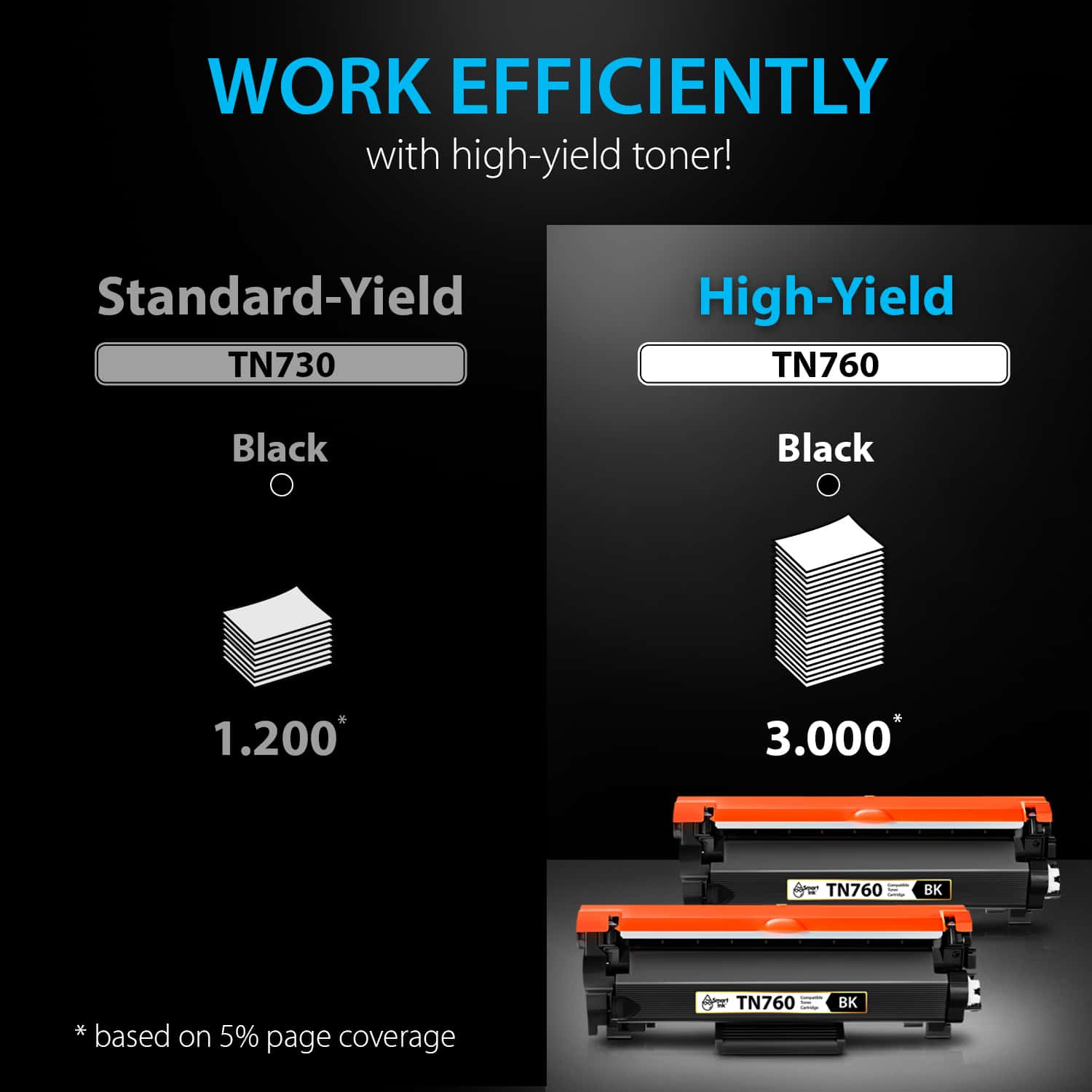 - Toner level tracking will notify you when it’s time to order the new TN760 toner pack.
