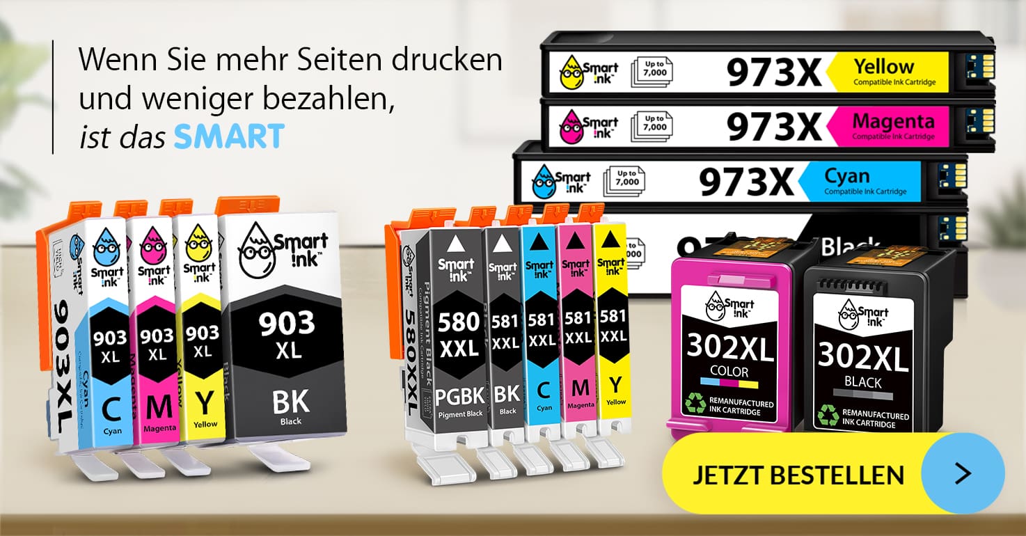 Wenn Sie online Tintenpatronen kaufen möchten, ist Smart Ink einer der führenden Einzelhändler in Europa für Ihren gesamten Druckerbedarf. Und das ist auch verständlich, denn wir bieten eine große Auswahl an qualitativ hochwertigen Patronen für verschiedene Druckermodelle, darunter Canon, HP und Brother. Jede Patrone wird gründlich getestet, bevor sie an die Kunden versandt wird, um sicherzustellen, dass sie einwandfrei funktioniert und Ihnen das beste Druckerlebnis bietet.