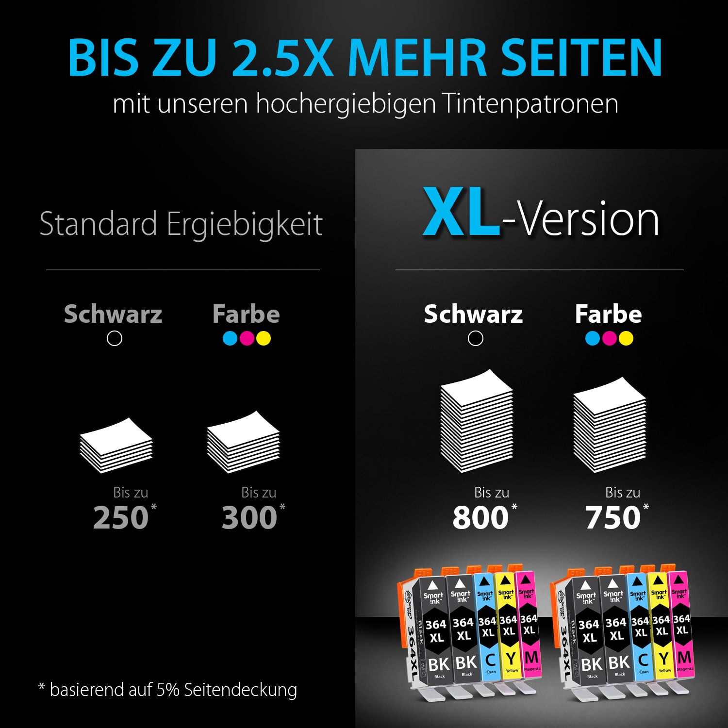 - Seitenmenge: Ersatz HP 364 Combo Pack bedeutet XL Version