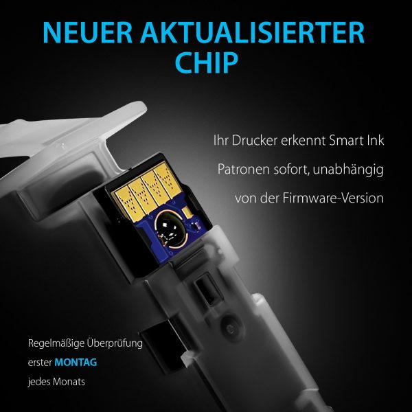 Immer die aktuellste Chipversion: Smart-Tintenpatronen sind mit der aktuellsten Version des Chips ausgestattet und funktionieren perfekt mit allen kompatiblen Druckern, einschließlich Druckern mit der neuesten Firmware.