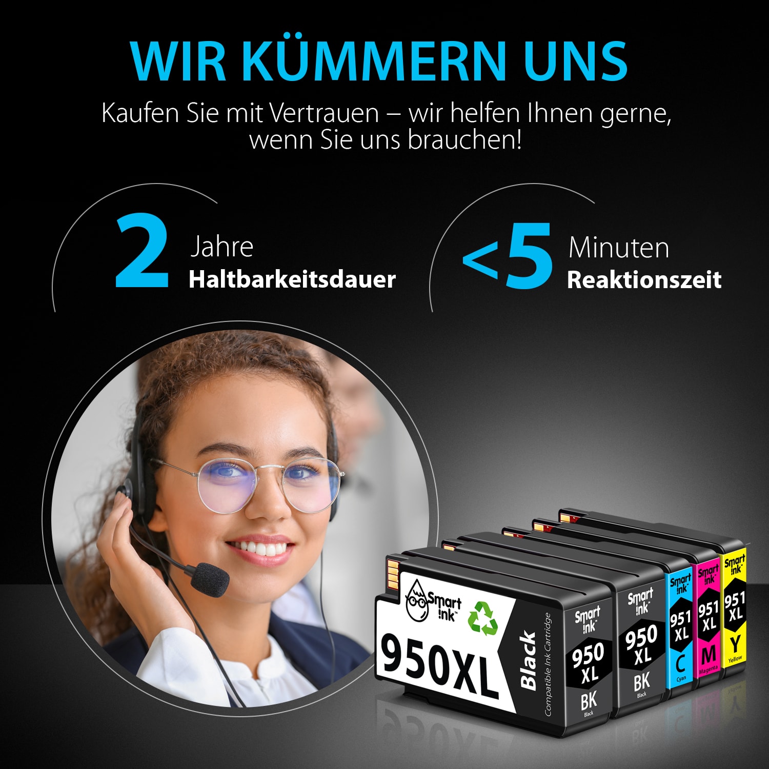 Mit Ersatz HP 950 Patronen erhalten Sie 2 Jahre Garantie. So kaufen Sie bei Smart Ink 950 XL mit Vertrauen und brauchen keine Angst zu haben. Das Set 950XL 951XL erfüllt alle Ihre Anforderungen.