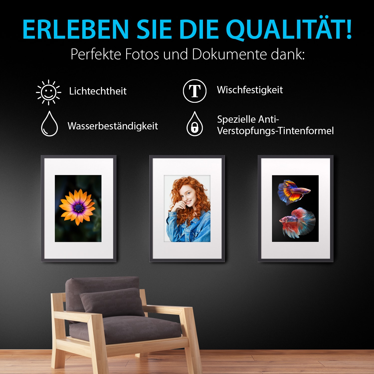 - Ihre Druckqualität – die gleichen lebendigen Farben und dieselbe Schärfe wie mit Original-Patronen. Wir legen äußersten Wert auf Qualität. Wir verwenden die Original-Tintenzusammensetzung und testen die Patronen gründlich, bevor wir sie in den Handel bringen.