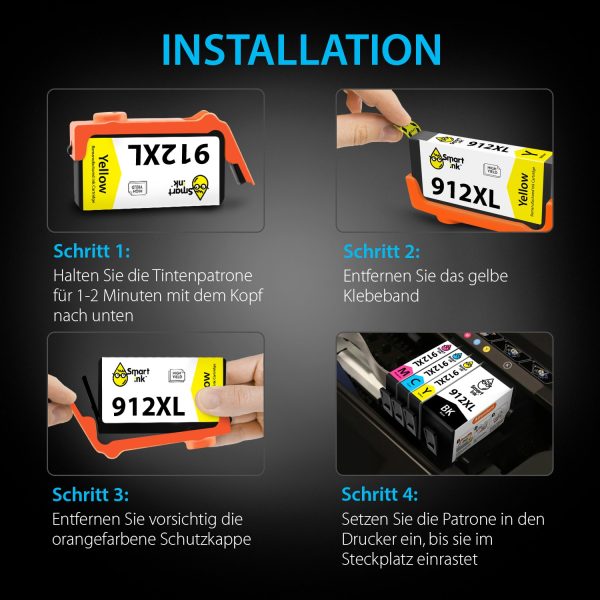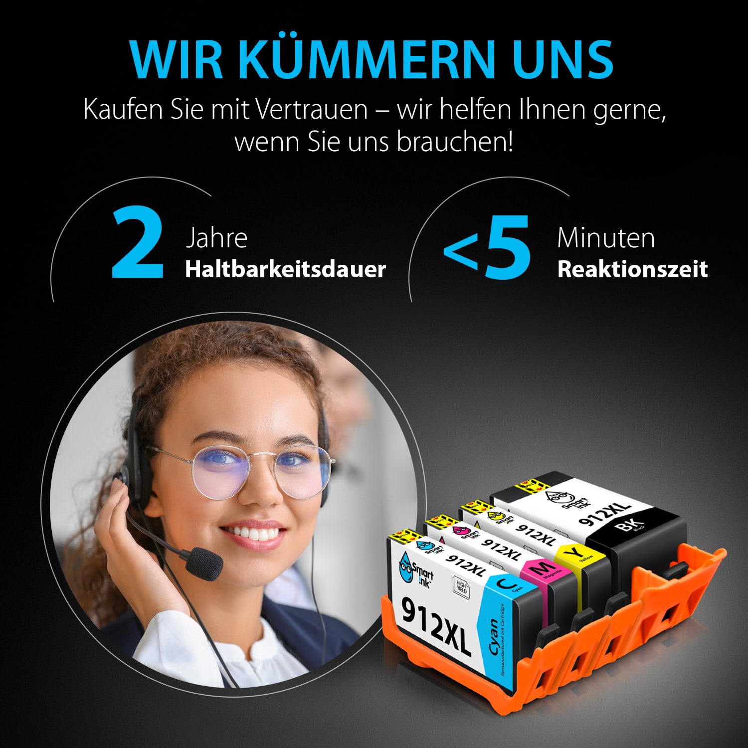 - Ihre Druckqualität – die gleichen lebendigen Farben und dieselbe Schärfe wie mit Original-Patronen. Wir legen äußersten Wert auf Qualität. Wir verwenden die Original-Tintenzusammensetzung und testen die Patronen HP 912 Set sorgfältig, bevor wir sie in den Handel bringen.