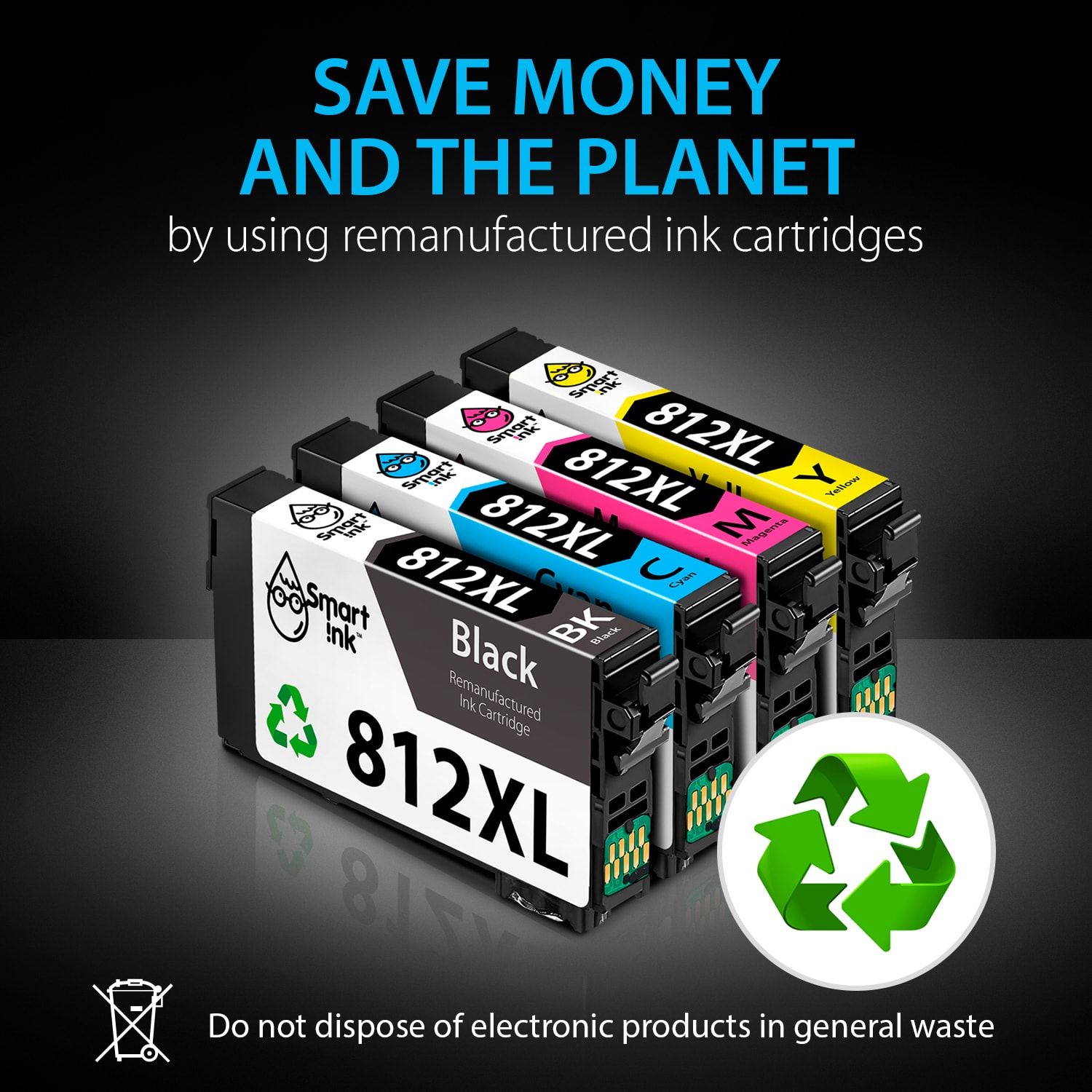 - Excellent Print Quality Smart Ink 812XL ink cartridges are remanufactured from OEM products, professionally cleaned, and tested to provide you with the same print quality as the original ink cartridges.