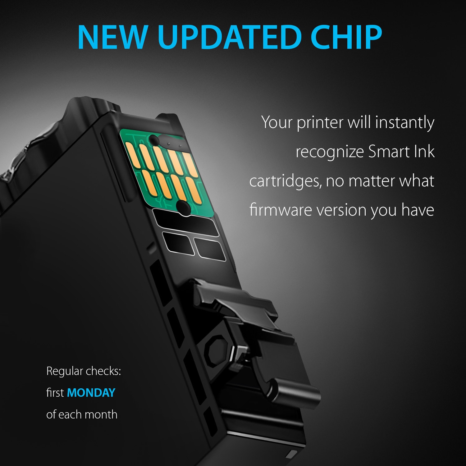 - Always the Latest Chip Version: Smart Ink cartridges are equipped with the most up-to-date version of the chip and work perfectly with all compatible printers, including printers with the latest firmware.