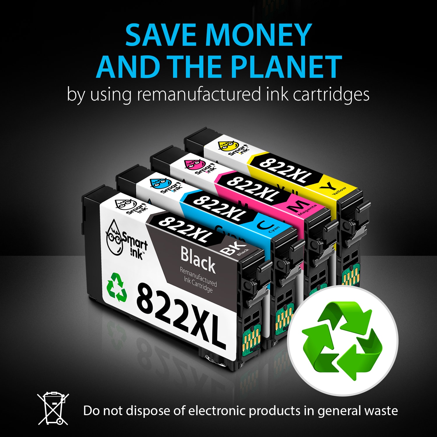 - Excellent Print Quality Smart Ink 822XL ink cartridges are remanufactured from OEM products, professionally cleaned, and tested to provide you with the same print quality as the original ink cartridges.