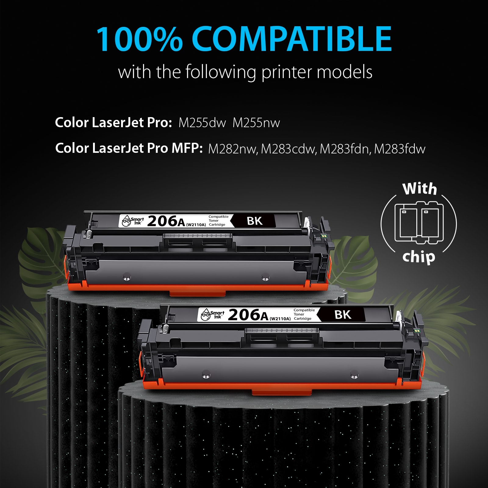 - Always the Latest Chip Version: Smart Ink 206A HP replacement toner cartridges are equipped with the most up-to-date version of the chip and work perfectly with all compatible printers, including printers with the latest firmware.