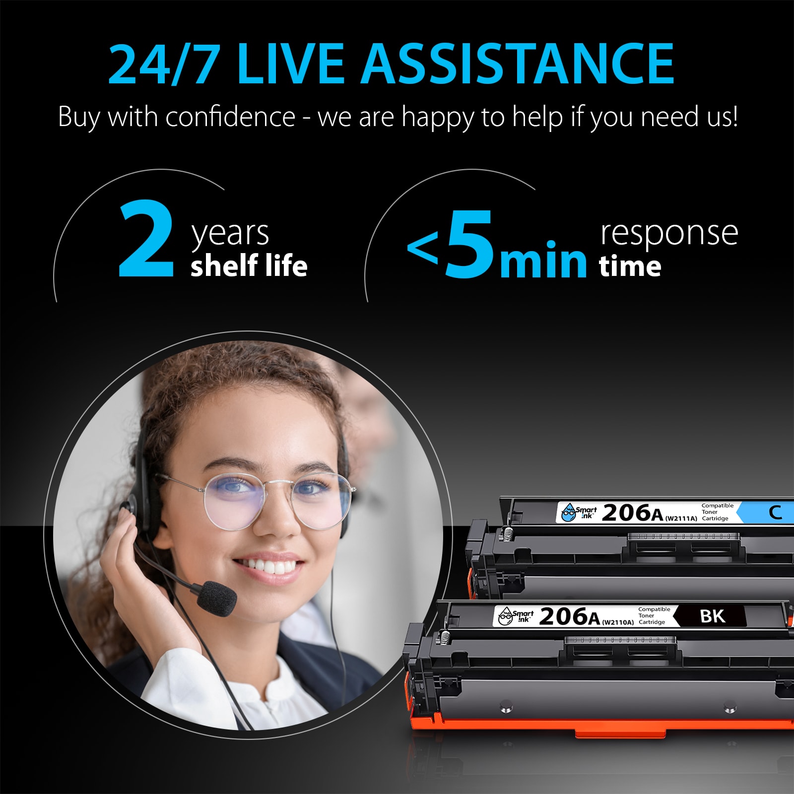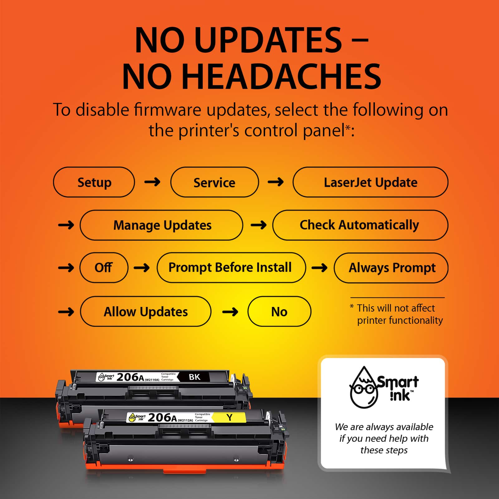 - Always the Latest Chip Version: Smart Ink 206A HP replacement toner cartridges are equipped with the most up-to-date version of the chip and work perfectly with all compatible printers, including printers with the latest firmware.