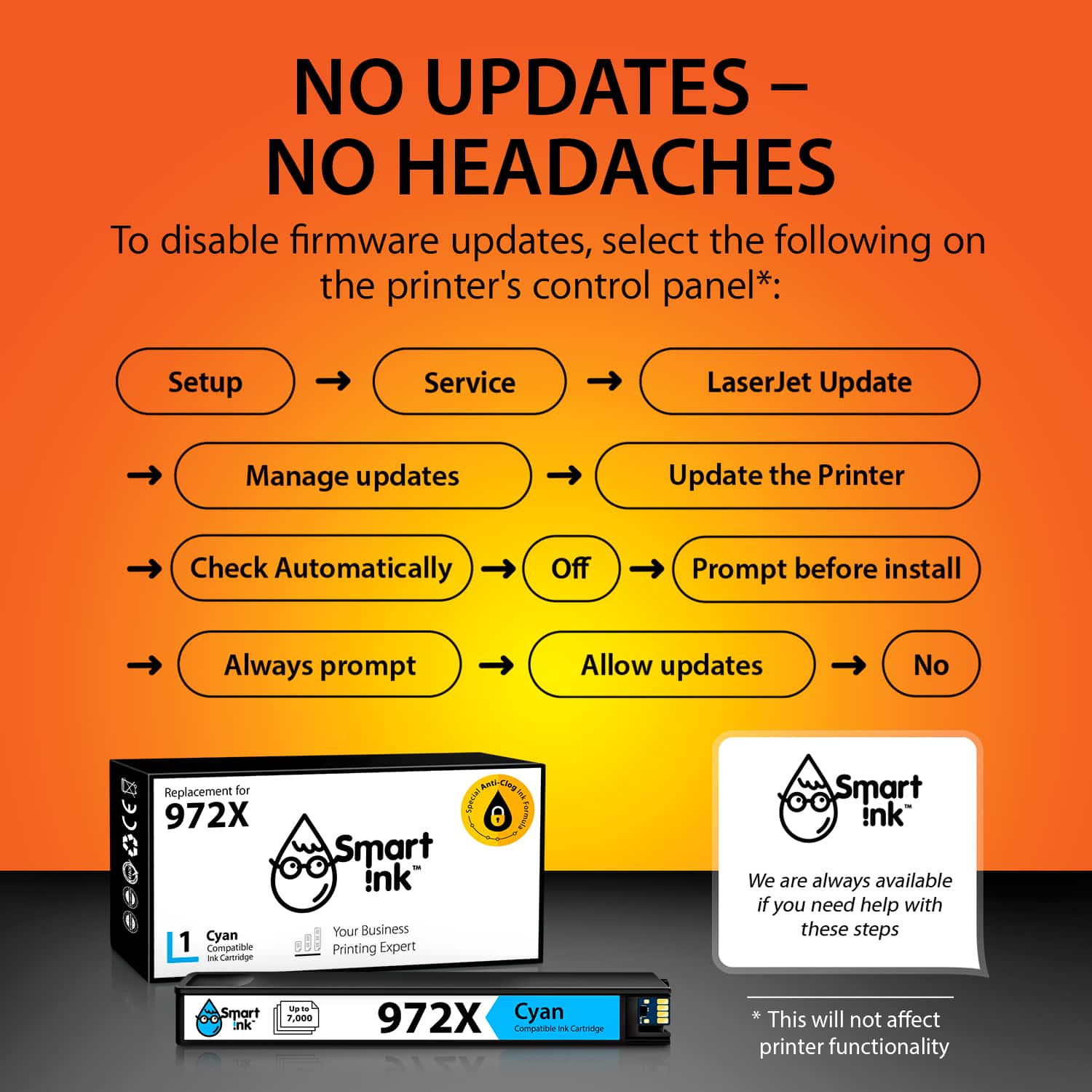 Always the Latest Chip Version: Smart Ink replacement cartridges are equipped with the most up-to-date version of the chip and work perfectly with all compatible printers, including printers with the latest firmware.