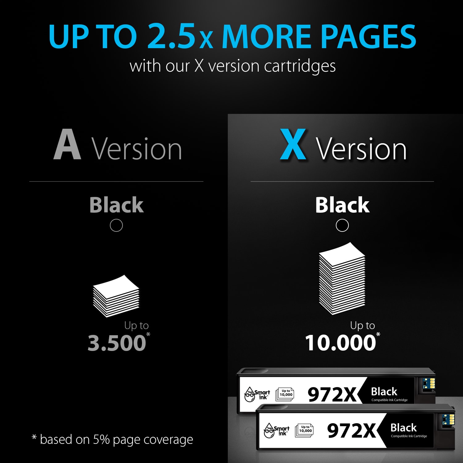 Always the Latest Chip Version: Smart Ink 972X HP ink replacement cartridges are equipped with the most up-to-date version of the chip and work perfectly with all compatible printers, including printers with the latest firmware.