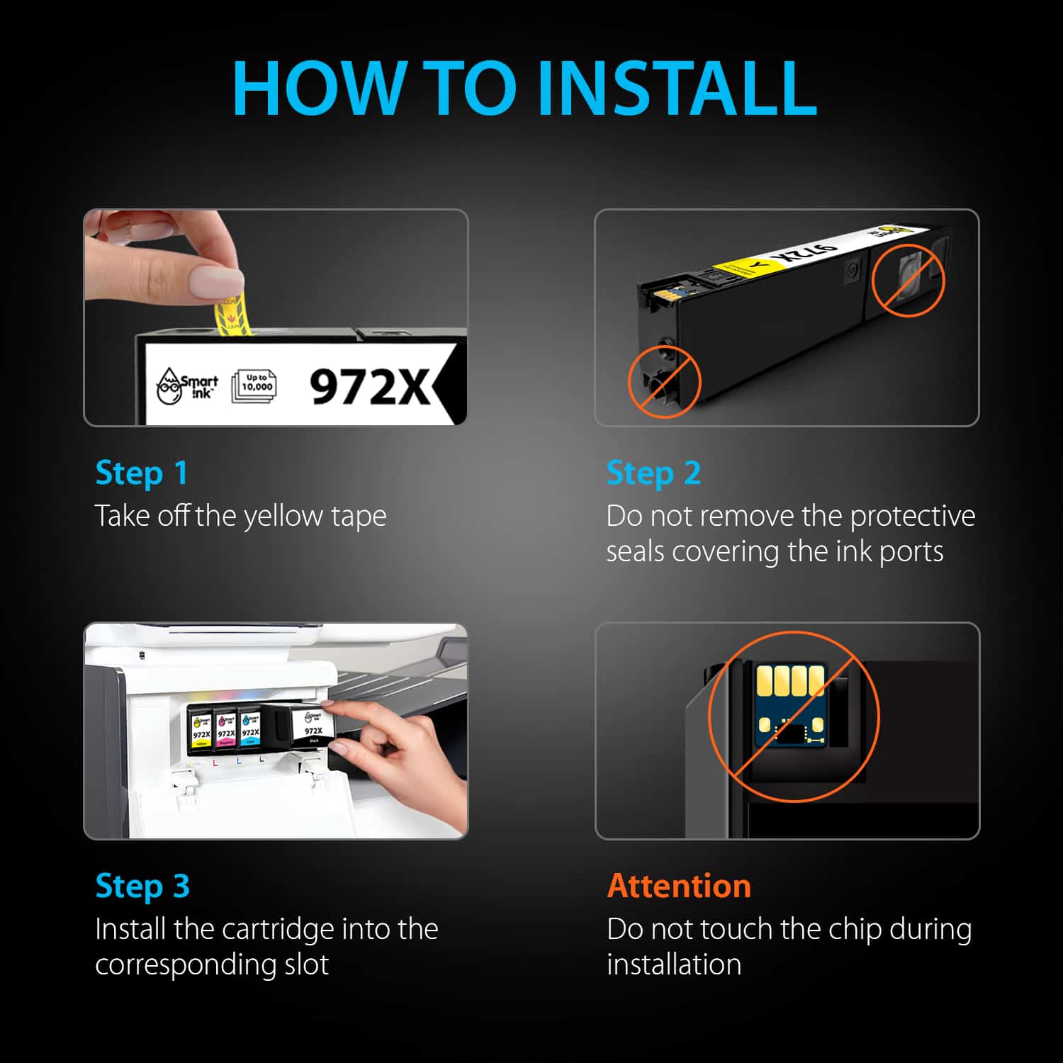 - Your confidence — we are always here to help when you need us. Buy HP 972 ink replacement with confidence! Installation is easy. But even if for any reason our cartridges are not suitable for you, we can always return them if needed.