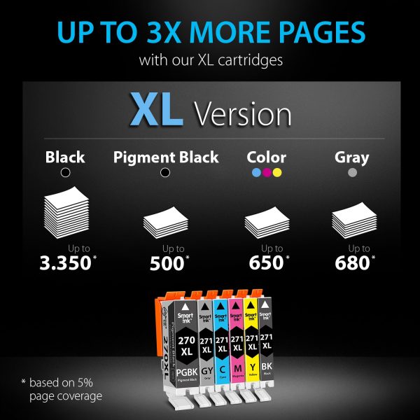 Compatible Ink Cartridge Replacement for Canon 270 XL, 271 XL (6 pack), Smart Ink