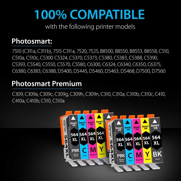 Compatible HP 564 ink cartridges (10 pack with Photo Black), Smart Ink