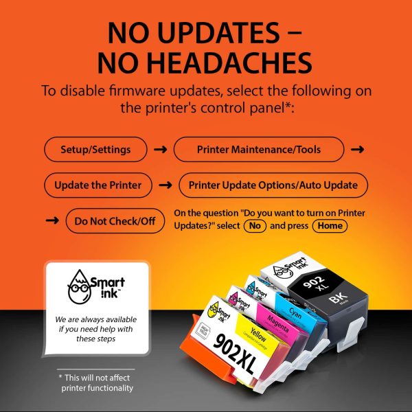 • Always the Latest Chip Version: Smart Ink HP 902XL ink replacement cartridges are equipped with the most up-to-date version of the chip and work perfectly with all compatible printers, including printers with the latest firmware.