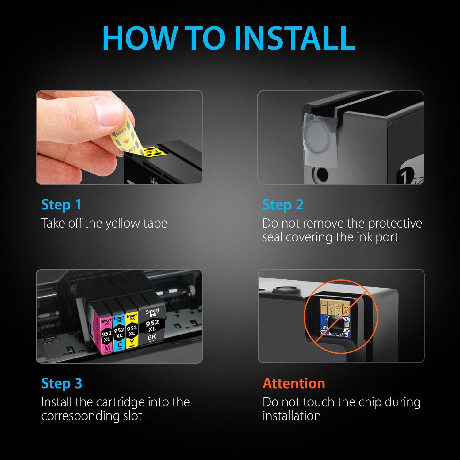 How to install Smart Ink HP 952XL ink cartridges combo pack?